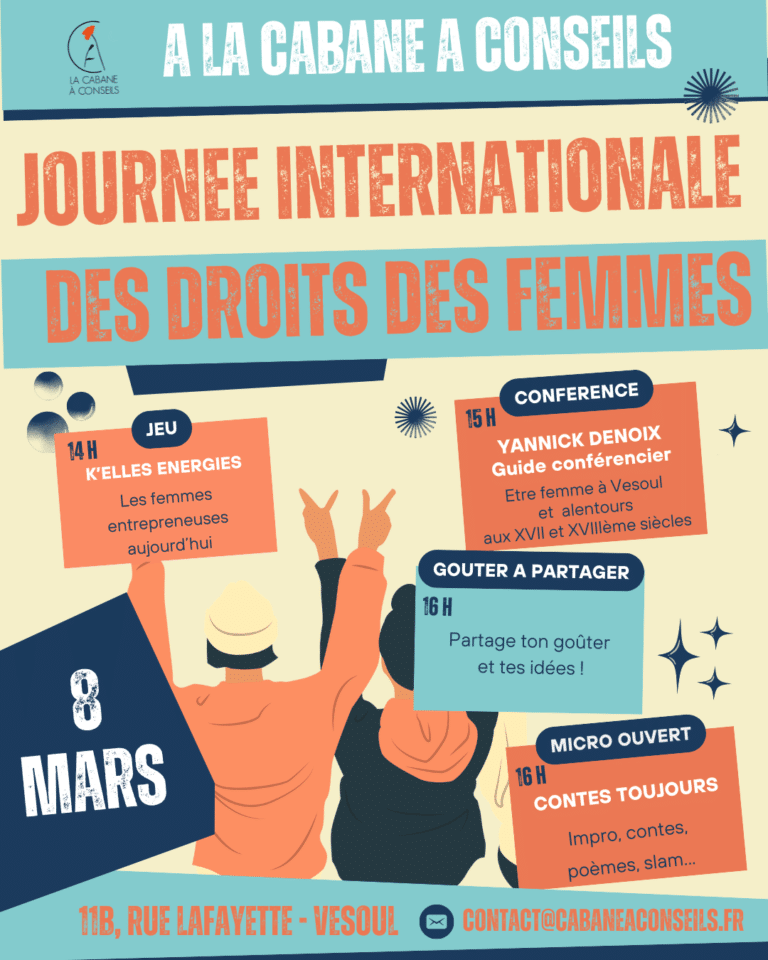À l’occasion de la Journée Internationale des Droits des Femmes, La Cabane à Conseils vous invite à un après-midi engagé, convivial et inspirant 💪💬